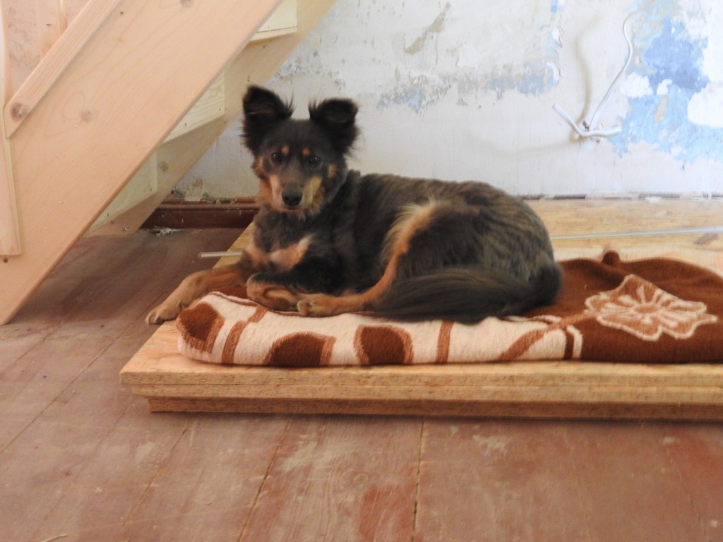 We live in the small village now and dogs have lots of freedom to roam fields and dip their toes in the lake. Our Charlie crossed the rainbow bridge last year in August and Lucy is preparing to follow. She stopped eating about 10 days ago so I took her to a vet. She was terrified to be there and hid her head under my arm and I was her only comfort by being there constantly with her. The vet did ultrasound scan and detailed blood tests. The scan showed that she has inflamed, fatty gall bladder walls and a gall bladder stone. She was also diagnosed with the heart murmur and the obvious for years, leg problems. We were given 5 tablets for the morning, 2 for the night. She didn’t want to eat so I force fed her with a parrot feeder for 4 days, pushing mushed chicken breast into her throat so her stomach wasn’t empty while she was taking tablets. She loves being brushed and massaged, but that is how far she will go with allowing humans access to her body. She didn’t improve and after 4 days got worse. She started to lose balance when trying to walk, and she was terrified of me, following with wide open eyes as I moved around my study where she lives, waiting for me to force feed her and pushing tablets into her. I called the vet after then and told him that she didn’t improve at all, and he told me that I must bring her back. I then decided that I will let her die at home. No force feeding, no tablets, no vet visits, unless she will be in pain or discomfort. She is almost 13 and for a street dog who lived her first years supporting herself it is a good age. I want her to be relaxed and at peace before she’ll say goodbye to us. So that is where we are now. She drinks water with a bit of apple cider vinegar (it helps with gall bladder stones) and doesn’t eat, but I hope that by some miracle she will get better. She is at peace and sleeps mostly. I moved to sleep next to her in case she needs something suddenly and if these are her last days, I want them to be stress and pain free. It looks to me like they are.